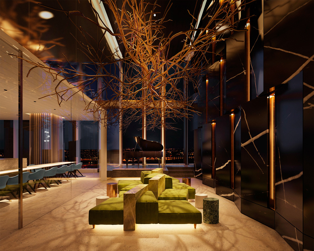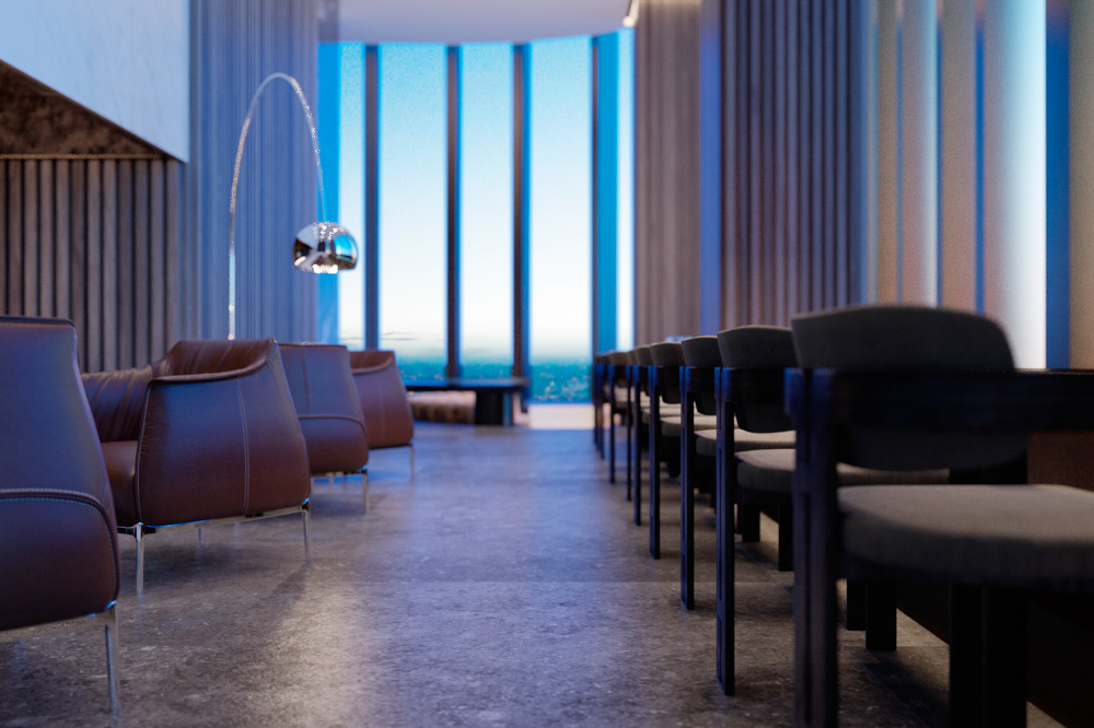 Interior renderings by Iain Banks.
